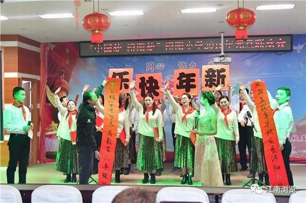 12月29日下午,潯陽(yáng)小學(xué)的日新樓熱鬧非凡,溫暖如春,到處跳躍著(zhù)喜悅的音符,這里正在舉行一場(chǎng)以“中國夢(mèng)潯陽(yáng)夢(mèng)”為主題的喜迎元旦聯(lián)歡會(huì )。